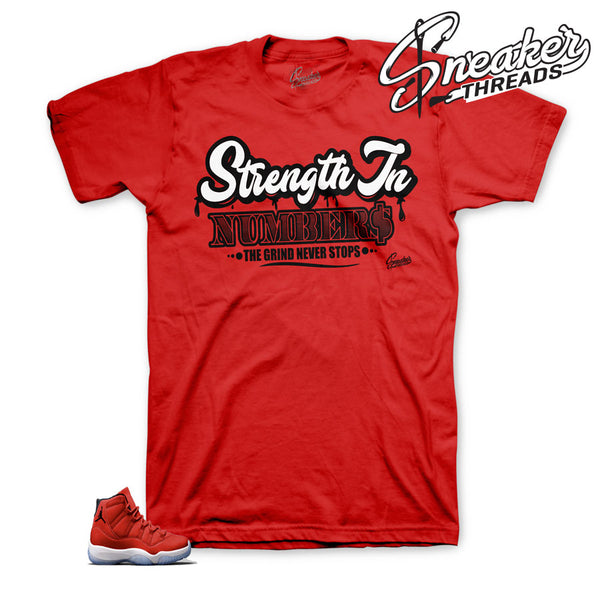 Jordan Retro 11 Gym Red shirt to match shoes.  ST Clothing Strength In Numbers Shirt Made of 100% pre-shrunk cotton Fits true to size. *You may refer to size chart for...
