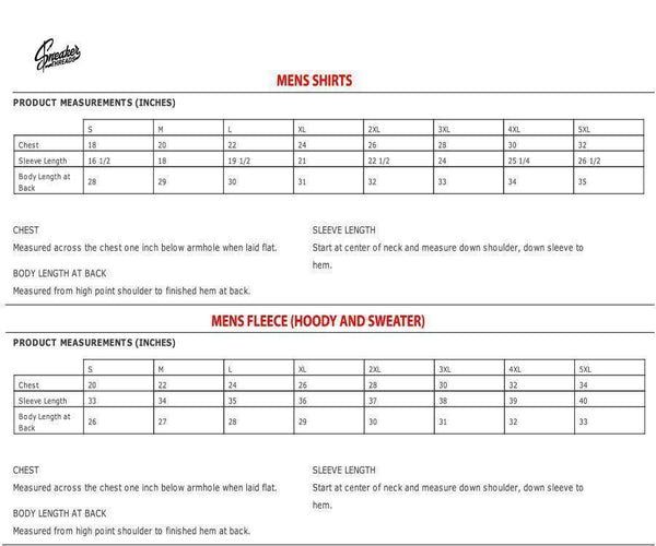Please use the following charts for sizing in inches: