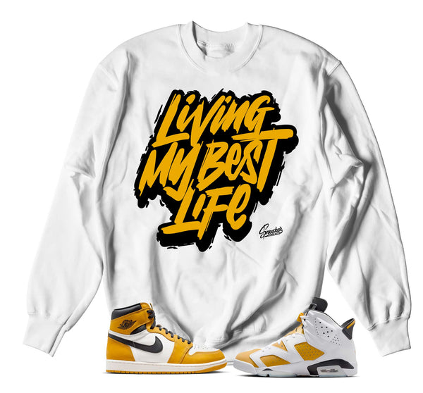 Sneaker sweaters to match your Jordan Retro 6 yellow ochre. ST Clothing- Living My Best Life Sneaker Sweater Made of 100% pre-shrunk cotton. Fits true to size. *You may...