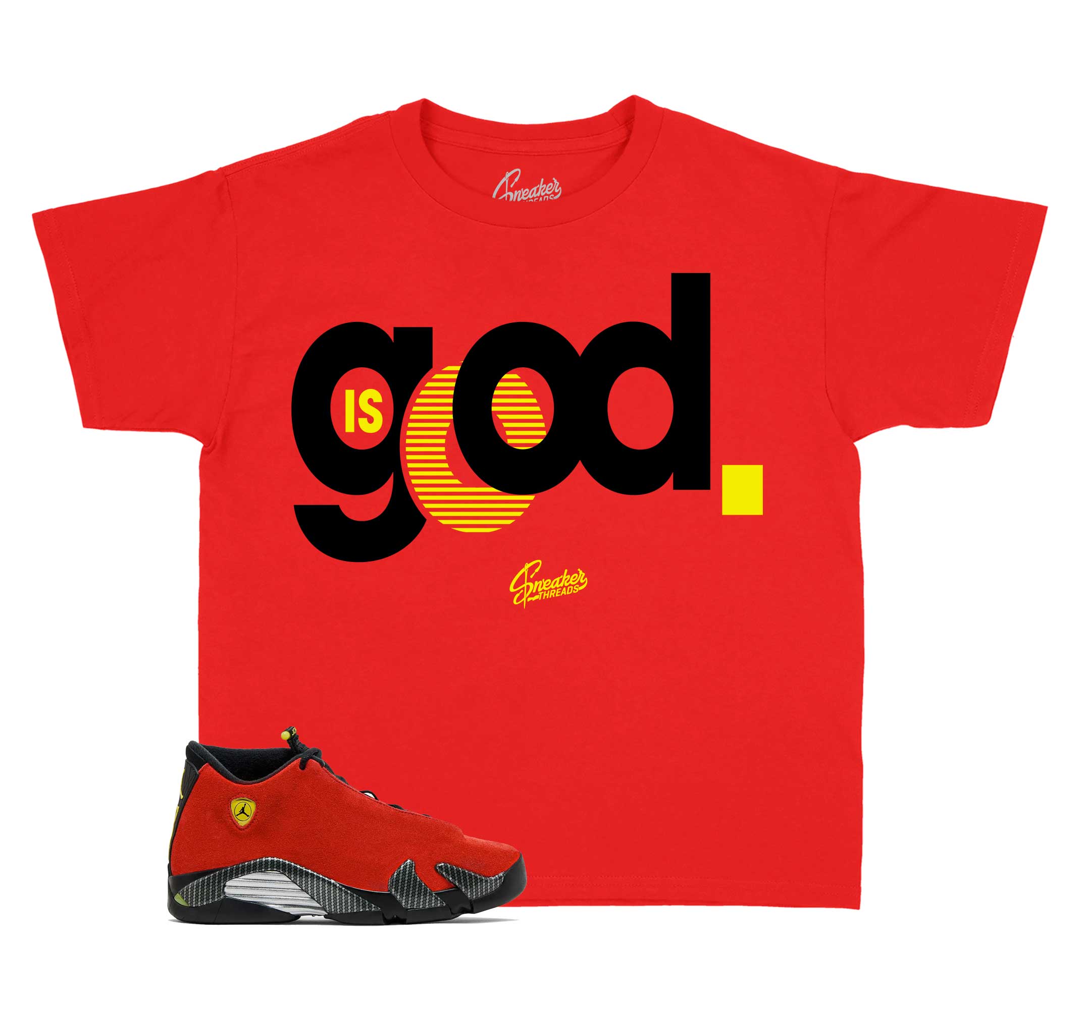 Kids sneaker tees to match Jordan Retro 14 challenge red | Sneaker outfits.   ST Clothing - God Is Good Shirt Made of 100% pre-shrunk cotton. Fits true...