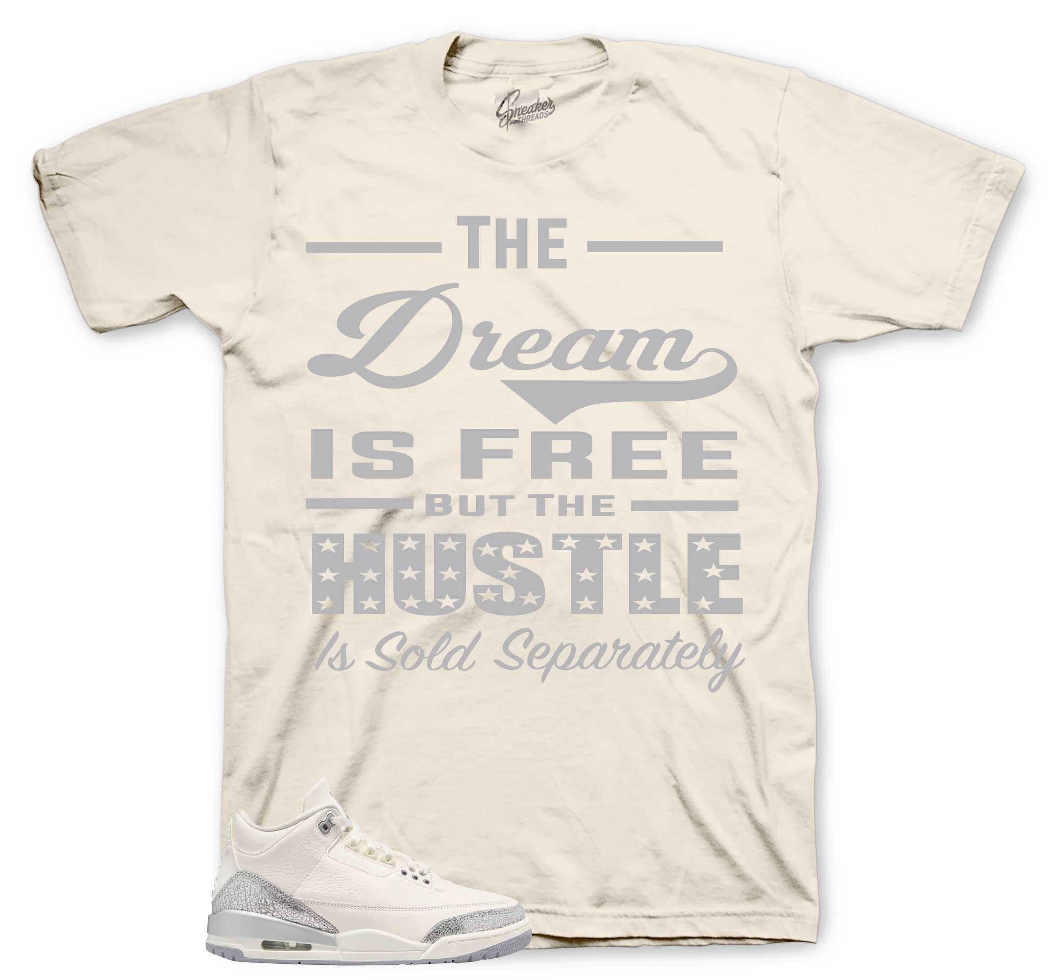 Sneaker shirts to match your Retro 3 sail and cement grey with metallic silver shoes | AJ3 Tees.