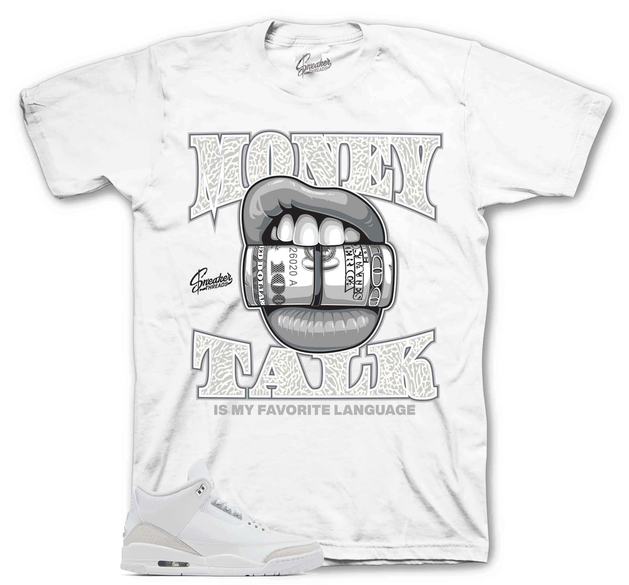 The perfect tee to match your Jordan Retro 3 pure money. Money Talk Tee Made of 100% pre-shrunk cotton. Fits true to size. *You may refer to size...