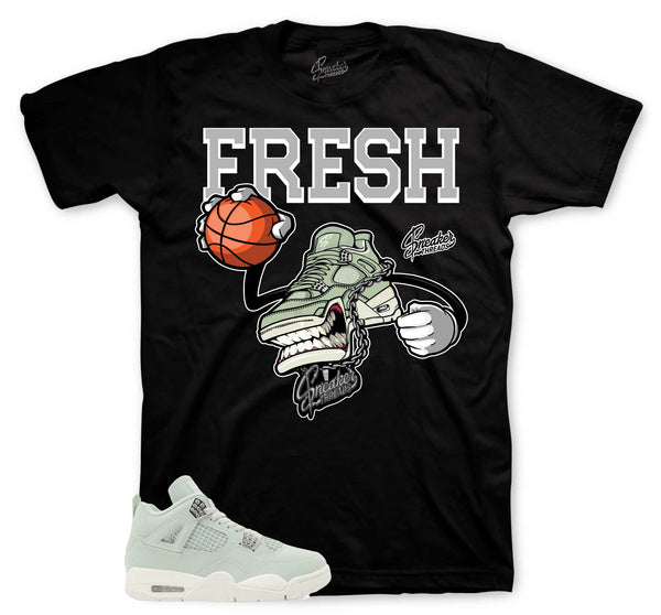 Shirt matches your Retro 4 abundance shoes in seafoam and sail..