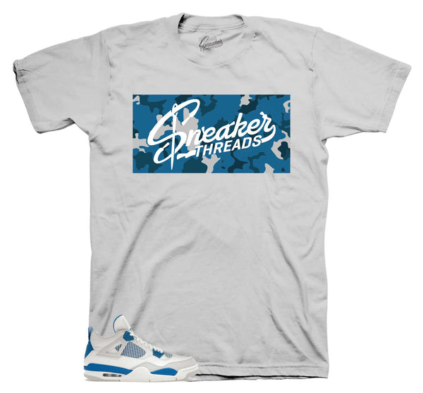 Sneaker tees to match your Retro 4 industrial blue shoes, also knows as the military blue retro 4. ST Clothing - Sneaker Threads Camo Box Sneaker Tee Made...
