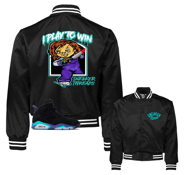The perfect varsity jackets to match your Jordan Retro 6 aqua sneakers.