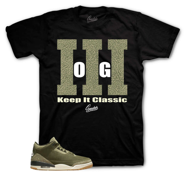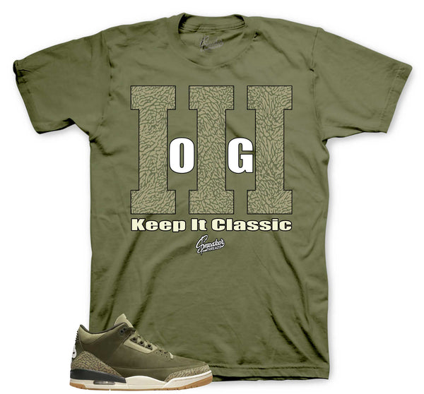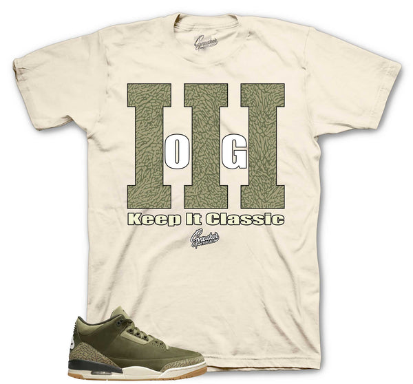 Sneaker shirts to match your Jordan 3 family affair shoes in medium olive.