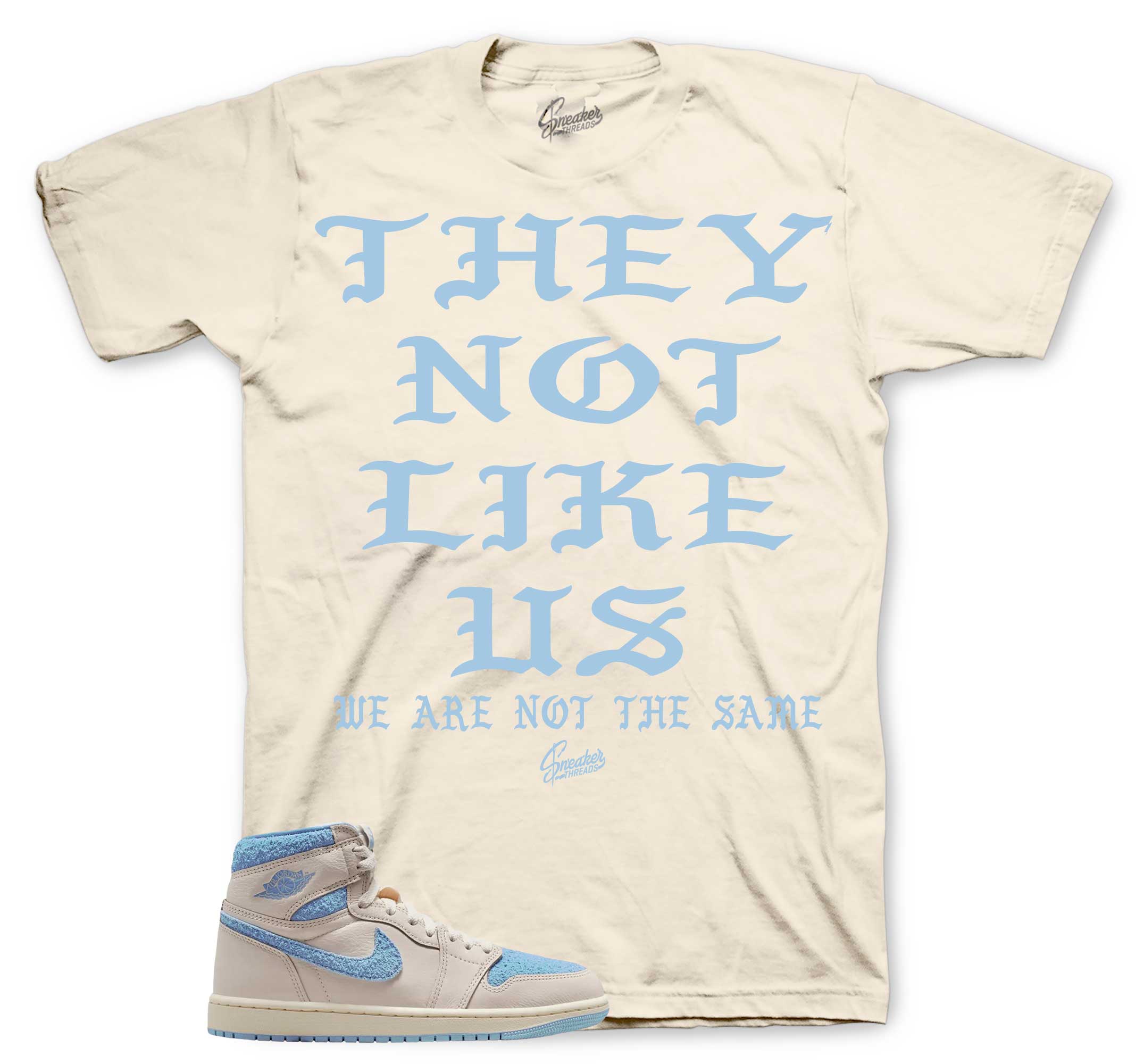 Sneaker shirts to match your Jordan Retro 1 psychic blue in sail | sneaker outfits.