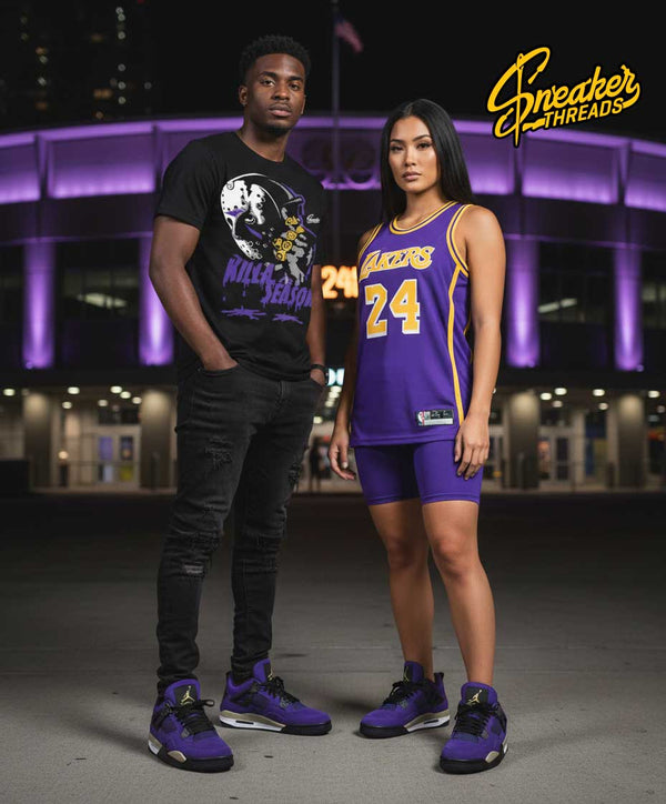 Sneaker shirts to match your Retro 4 imperial purple shoes | Lakers 4s colorway Tees.