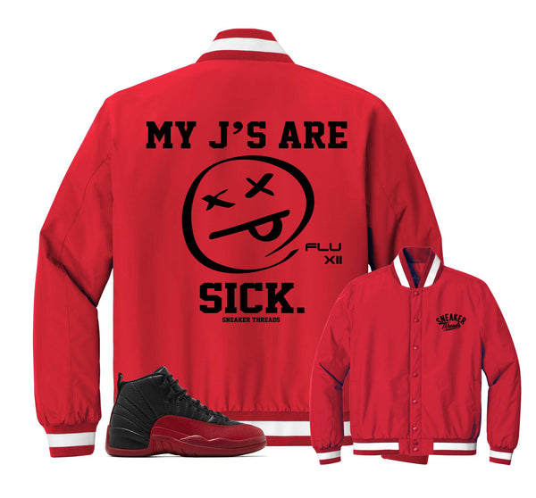 Insulated jacket to match your Jordan 12 flu game. AJ12 varsity red outfits.
