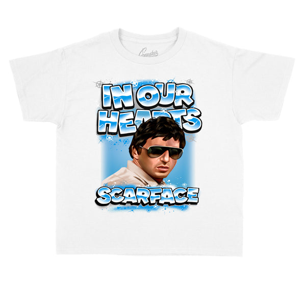 Kid's shirts match Jordan Retro 11 legend blue shoes.