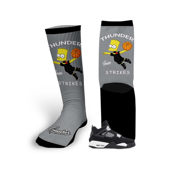 Socks to match your Jordan retro 4 white thunder sneakers | black white socks to match all your kicks.