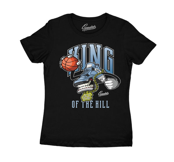 Women's shirt matches your Retro 4 University Blue shoes.
